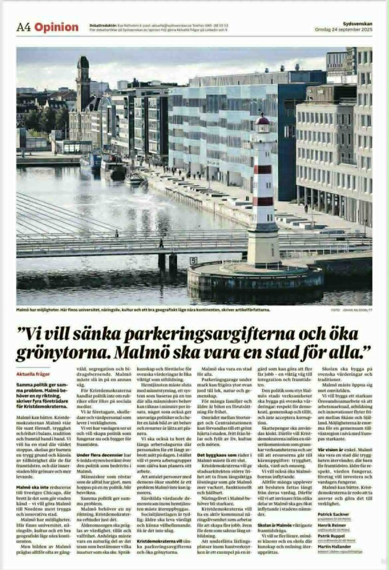 Malmö kan bättre. Kristdemokraterna är redo att ta ansvar och göra det till verklighet.